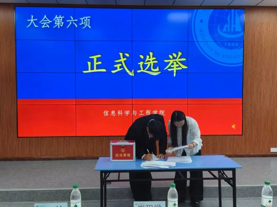 为深入学习贯彻党的二十大精神、响应全国学联高校学生组织改革部署,2025年10月15日,信息科学与工程学院第七次学生代表大会于知新楼东配201教室顺利召开。院长助理齐林、学工主任崔积学、团总支书记王梓扬、辅导员代表及全体学生代表共同出席会议。