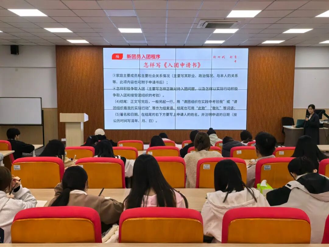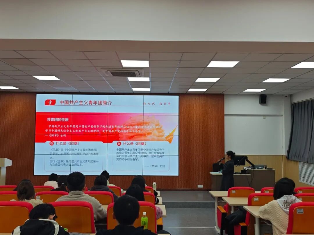 为引导入团积极分子深刻领悟共青团的初心使命,强化责任担当与组织归属感。通过系统化学习,助力青年学子在思想淬炼中坚定理想信念。为早日成为合格共青团员奠定坚实基础,我院于10月27日晚在知新楼东配201教室开展入团积极分子团课。