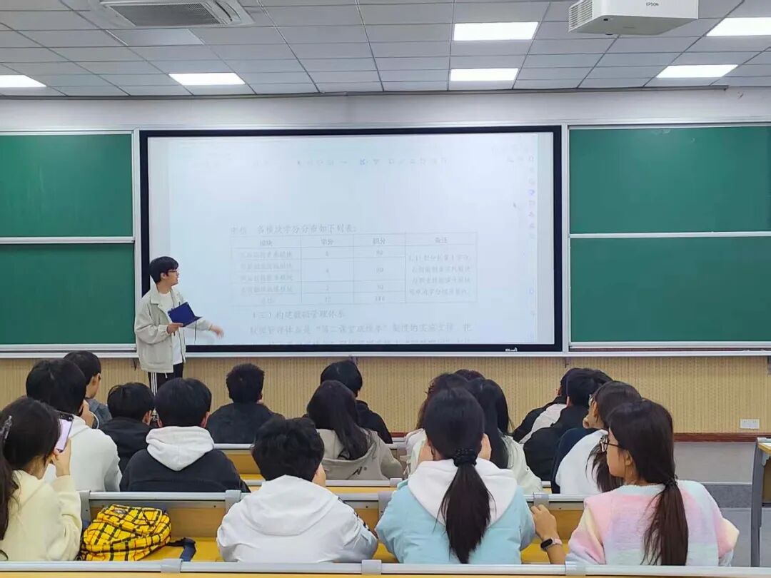 会议还重点阐述第二课堂成绩单制度,对第二课堂各个模块分数要求进行细致说明,同时详细讲解到梦空间活动报名参与流程,鼓励同学们积极报名的同时,提醒大家按照活动要求按时参与,丰富大学校园文化生活。
