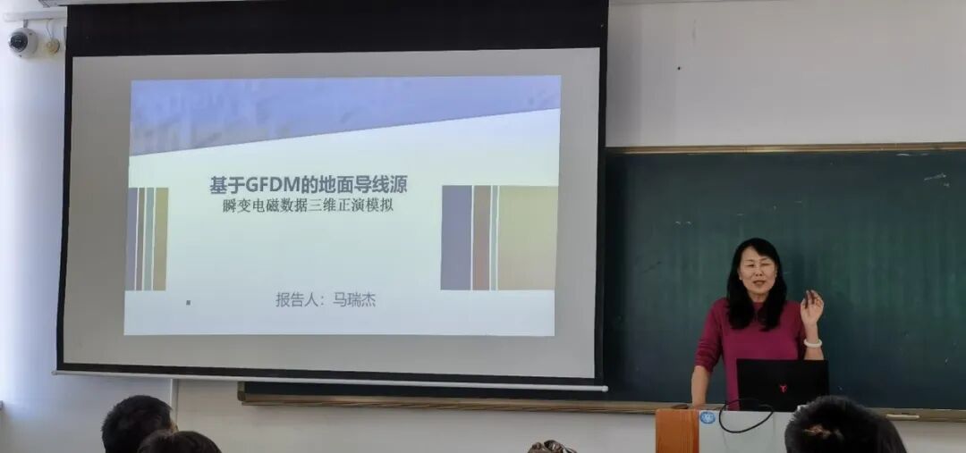 马教授聚焦瞬变电磁数值模拟技术痛点,系统阐释了 GFDM 的核心原理,并将新型区域型无网格方法引入该领域,凭借无需数值积分、偏导数计算简捷的优势,显著提升了程序开发效率与正演计算性能,已获行业充分肯定。马教授通过三维双异常体模型计算结果与传统方法对比,验证了算法的准确性、高效性与稳定性。现场互动环节,与会教师围绕方法优化、应用拓展等问题深入探讨,氛围热烈。