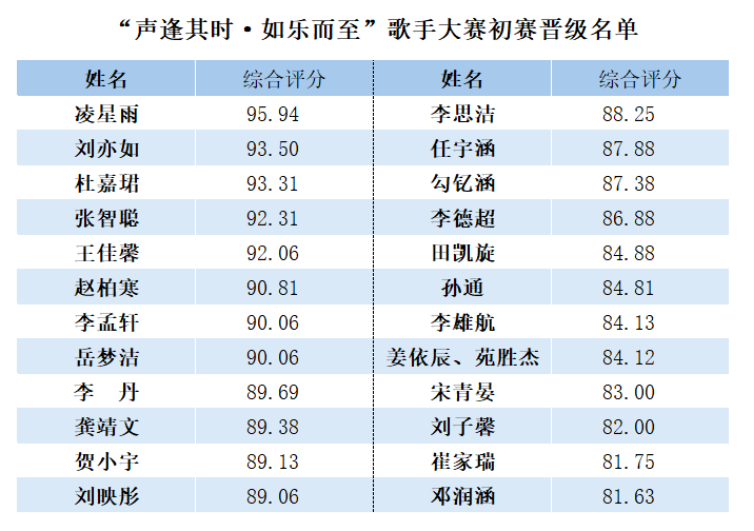 最终,评审团依据“情感表达、节奏把控、演唱技巧”三大核心评审维度,对参赛选手进行综合评审打分。经统计核算,最终确定24组选手晋级复赛: