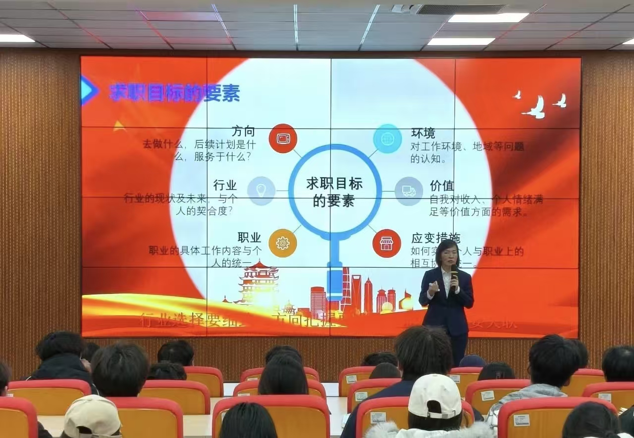 讲座中,院长助理齐林结合行业发展趋势与学院人才培养特色,从求职目标确立、优秀校友经验分享、简历制作技巧三个核心维度展开系统讲解,在求职目标确立环节,齐林老师强调,精准的求职目标是职业发展的核心指引。她从行业适配、职业发展、个人能力、地域发展等关键要素出发,细致剖析了确立求职目标的科学方法,引导学子摒弃盲目求职、随波逐流的误区,学会结合自身专业特长与行业发展规律,制定具有针对性和可行性的职业发展规划。