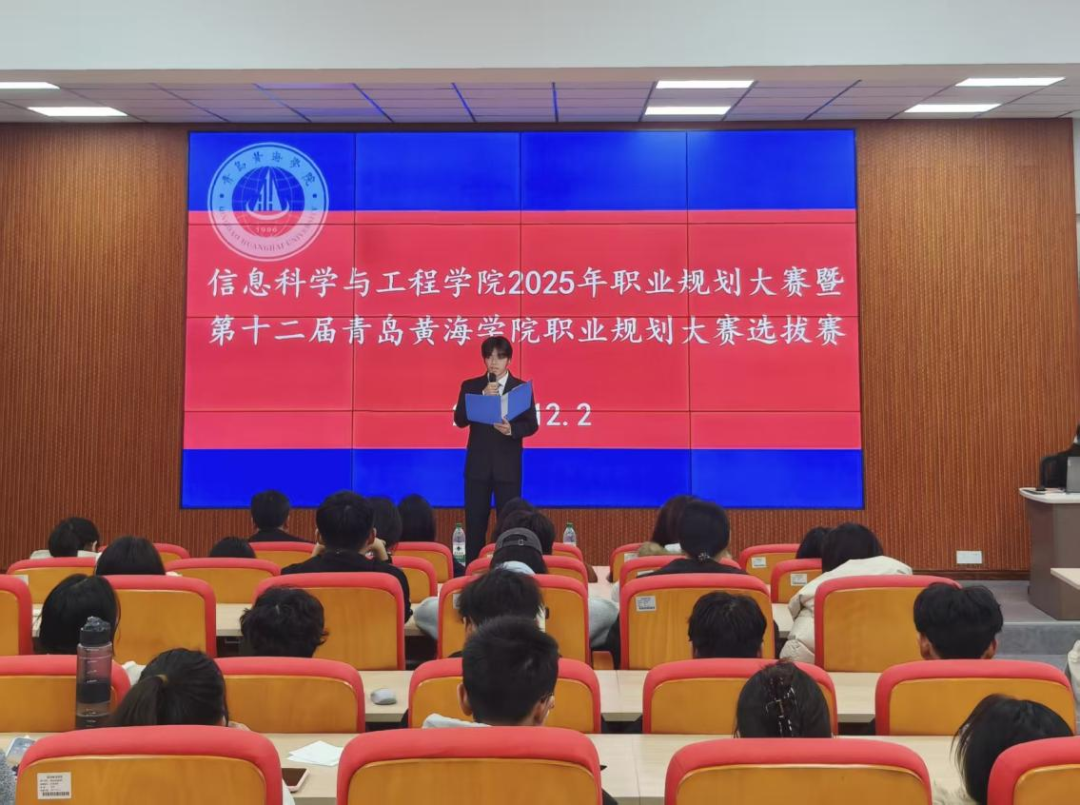 为引导大学生科学规划职业生涯,提升就业竞争力,12月2日,信息科学与工程学院2025年职业规划大赛暨青岛黄海学院第十二届大学生职业规划大赛选拔赛于知新楼东配201报告厅成功举行。学院各年级共11名优秀选手同台竞技,展现青春规划风采,学校就业指导中心徐哲老师、暴海忠老师应邀担任评委并现场指导。