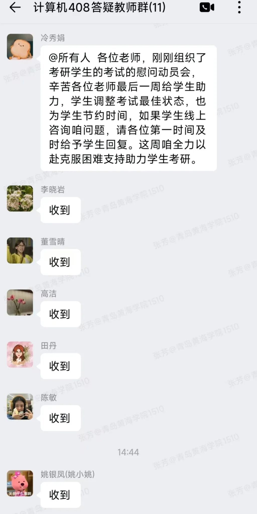 从学习上的精准帮扶到生活中的细致照料,再到心理上的温情疏导,这份 “考研暖心大礼包” 是学院对学子的深切关怀,更是冲刺路上的 “强心剂”。学院的辅导员老师都在为你们加油鼓劲。记住,无论遇到什么问题,学院永远是你们的‘避风港’。