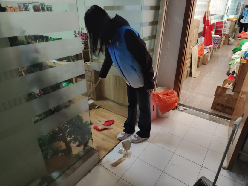 活动现场,志愿者们分工协作、干劲十足。首先,他们进行全方位清扫,仔细清理地面的灰尘、杂物,不放过任何卫生死角,确保社区内环境整洁。随后对废弃物品的集中收集与规整工作。全体人员严格按照要求,对社区内废弃宣传板、空瓶等废弃物集中归纳,耐心将其规整打包。经过一番细致操作,原本零散的废弃物品被有序码放至指定收纳区域,为后续回收利用做好准备。
