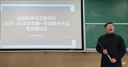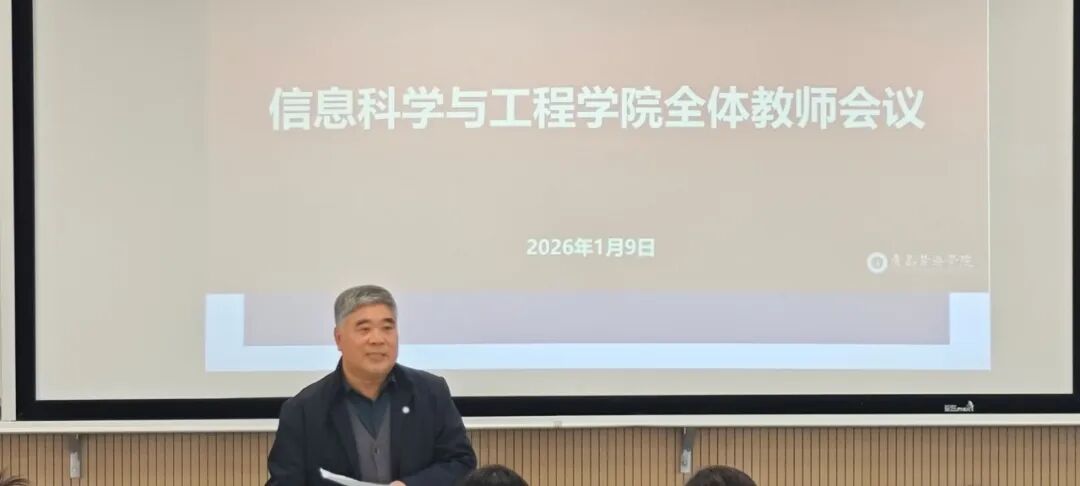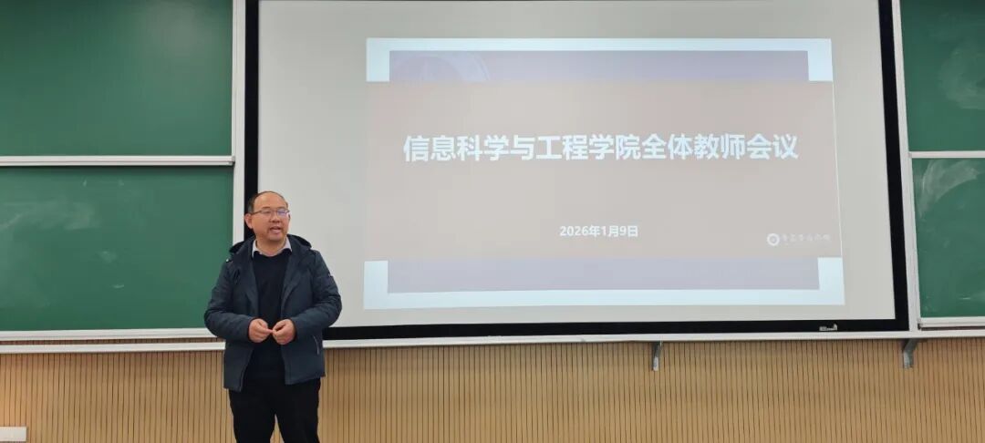 1月9日,信息科学与工程学院在知新楼401阶梯教室召开全体教师会议,学院全体教师参会,会议围绕岗位选聘、教师学生发展要求及期末工作等内容展开部署。