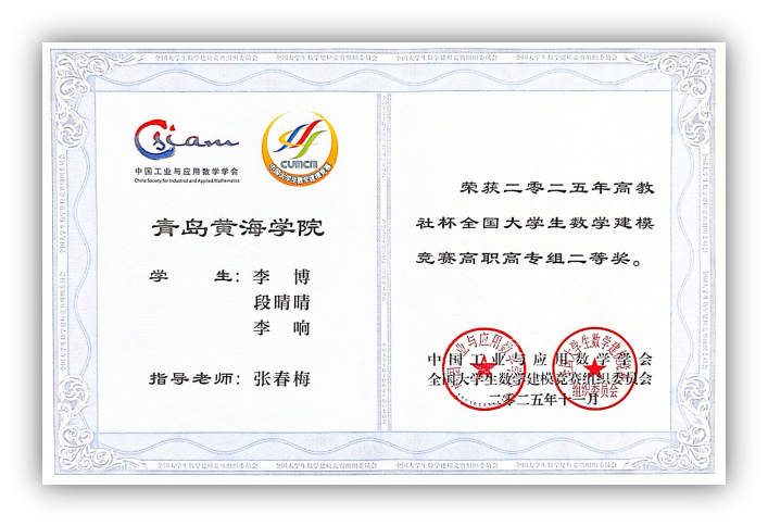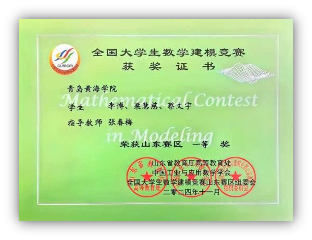 2023年,李博首次参加数学建模竞赛,并荣获亚太地区国家三等奖,再到数维杯获奖,愈发激起他对数学建模的热爱,截止至今,在数学建模领域荣获12余项,其中,最突出的是他在2024年全国大学生数学建模建模山东赛区一等奖,再到 2025年全国大学生数学建模国家二等奖。