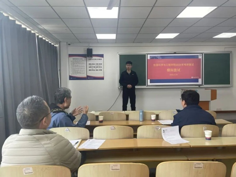 为助力2026届考研学子提前熟悉复试流程、掌握面试技巧、提升应试能力,以从容状态迎战研究生复试,3月25日,信息科学与工程学院针对数据科学与大数据技术专业、人工智能专业、计算机科学与技术专业,专项开展2026年考研复试模拟面试活动,全方位为学子复试备考保驾护航。