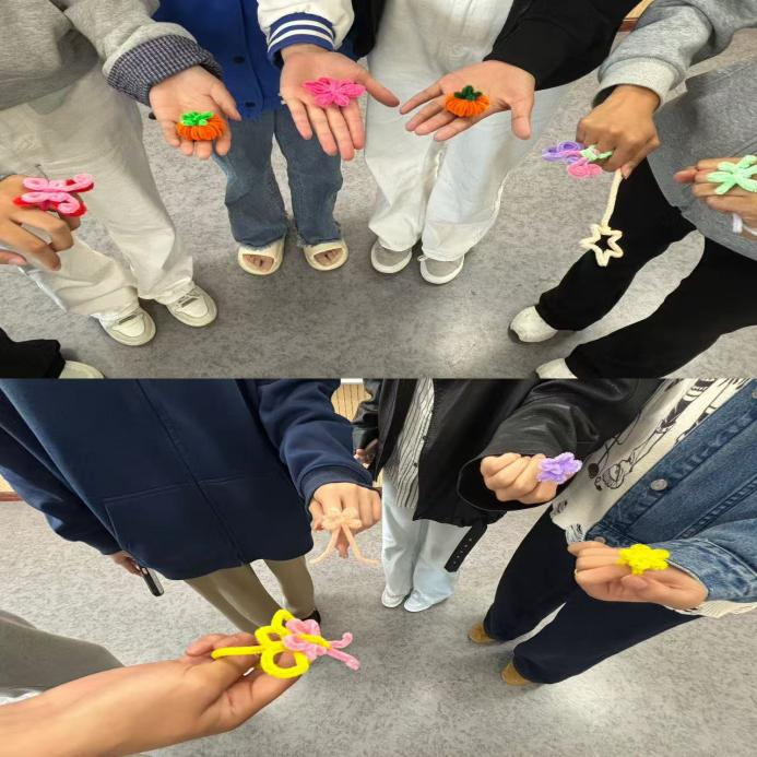 2.绒韵传情:同学们完成作品后进行了合影留念,以趣味手作传递审美意趣,让美育在指尖浸润心灵,让手作之美点亮校园春光。