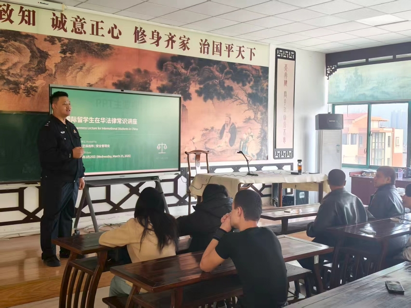 3月25日下午,青岛黄海学院国际教育学院联合灵山卫派出所、学校安全管理处,在知诚楼孔子学堂为国际学生开展法律常识专题讲座,切实提升国际学生在华法律素养,保障其学习生活安全有序。
