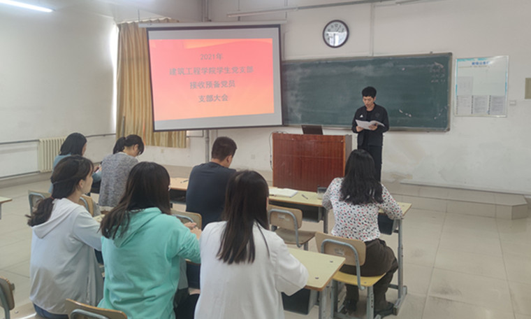 为有效充实建筑工程学院学生党支部的队伍,更好地发扬党支部全心全意为同学服务的宗旨,2021年5月20日下午建筑工程学院学生党支部在知行楼433教室召开接收预备党员支部大会。出席本次大会的有建筑工程学院学生党支部书记赵铭涛及支部全体正式党员、预备党员和所有发展对象。会议由赵铭涛同志主持。