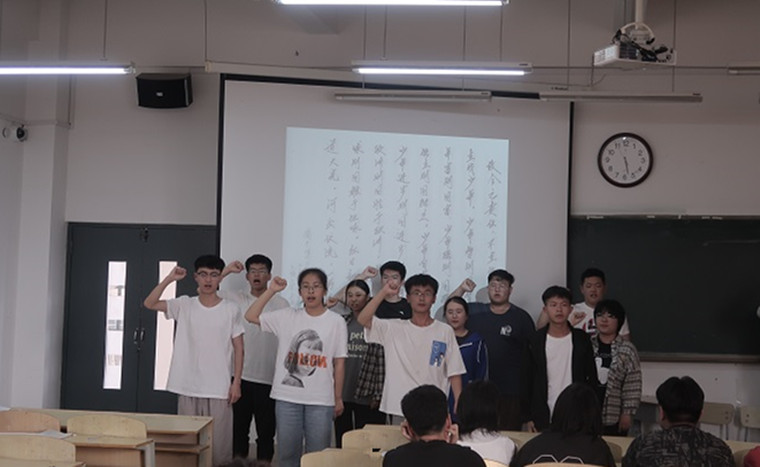 此次活动主要表演形式为戏曲,小剧场剧目和小品剧,各班级采用抽签的形式决定出演顺序。本次表演一共有五个节目,他们都以自己的行动致敬伟大的中国共产党人,以自己的理解再现伟大的“名场面”,他们用激昂的台词,动情的音乐,使在场观众身临其境,恍惚间我们好像真的回到了那个动荡危险,战火纷飞的年代。经典的表演赢得台下阵阵掌声。表演结束后,团总支书记潘月宇老师对每个节目进行评价与总结。