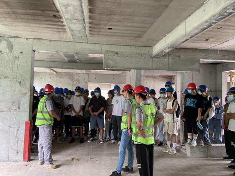 海川建设集团凯景领盛豪庭项目负责人孙经理首先对我院老师和同学们的到来表示热烈欢迎,并对我院往届毕业生在本公司的工作给予充分肯定,希望后续与我院能继续加深合作,为学生发展提供良好的平台。随后项目总工杨辉带领同学们参观项目现场,在杨工的讲解下,同学们对对土木工程专业有了更广泛的认识,理论课堂结合实践现场,使大家的知识框架更加清晰,以后的学习目标更加明确。