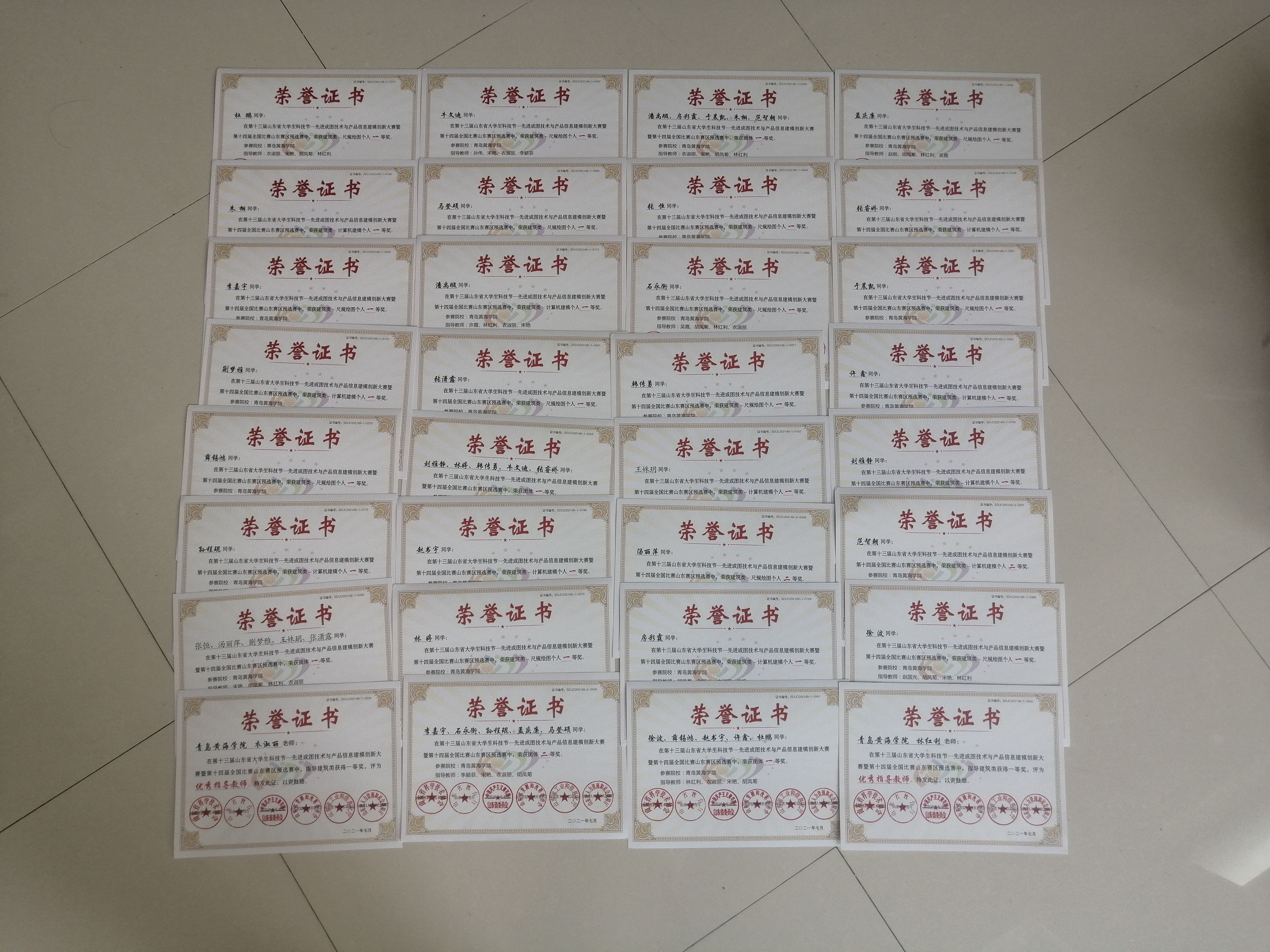 2021年6月5日,由山东省科协、山东省教育厅等6部门联合主办的第十三届山东省大学生科技节—山东省大学生先进成图技术与产品信息建模创新大赛在线上开赛。经过激烈角逐,代表建筑工程学院参赛的5个团队,共计25名同学全部获奖,荣获团体一等奖4项,团体二等奖1项,个人单项一等奖23项,个人单项二等奖2项,获奖率120%。同时,宋艳、衣淑丽、林红利、胡凤菊4位老师被评为“优秀指导教师”。