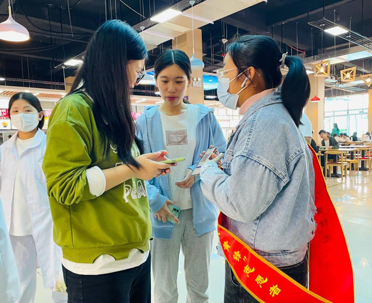 就餐师生通过完美校园APP扫描志愿者展示的二维码获取积分