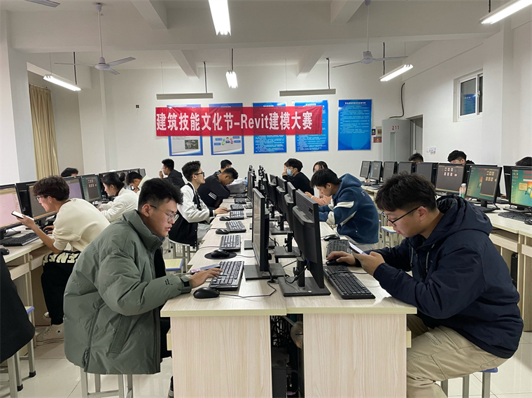 比赛准备阶段,由监督人向大家介绍了这次比赛的相关规程和评分细则,并强调此次比赛注意事项,严格遵守赛场规章制度、操作规程,文明竞赛,保证此次大赛的公正性、公平性、严谨性以及透明性。然后,监督人说明此次比赛的技能要求:1、熟练掌握建筑施工图识读和表达方法。2、能够正确使用Revit软件,熟练完成建筑三维的绘制,并且能够正确导出CAD图纸。3、图形表达要求正确、完整。比赛开始,参赛学生立刻进入状态,操作电脑认真完成考试项目,经过努力,同学们陆续完成了比赛内容。