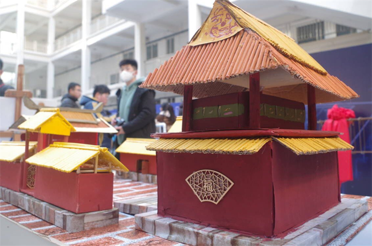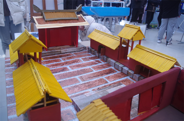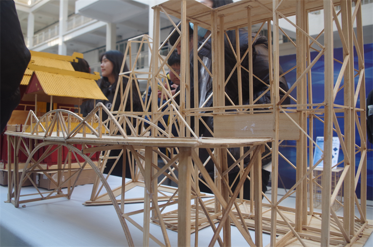科技文化节是一个帮助青岛黄海学院学子激发创新思维、弘扬工匠精神的舞台。因此,建筑工程学院在此次展览中展出中国古建筑模型、捆扎钢筋以及抗震墙三样成果。古建筑模型分为单间古建和乾清宫。建筑主体是采用胭脂红加明黄的配色,由废旧木材,纸板做就。通过复原古建筑,建筑工程学院学子希望既能够在古代与现代之间找到一个完美的契合点,让古建筑也能散发出新光芒,也能在我们中国古代建筑逐渐式微的今天,传承的中国优秀建筑文化,继往开来,不忘初心。一根根简单的钢筋,在同学们巧妙的组合之下形成了可以承载万斤重的整体,压不垮、打不倒,象征着建筑工程学院学子对于生活中的种种负但和压力的一种对抗精神。抗震墙是我建筑工程学院徐秀凤老师带来的发明专利,可吸收地震时产生的大部分能量,在与其他结构进行共同工作时,就可以较好的降低其他结构的抗震要求。徐秀凤老师的创新想法,为国家抗震工作做出巨大贡献,她也将带领更多学子为祖国献出更多的力量。