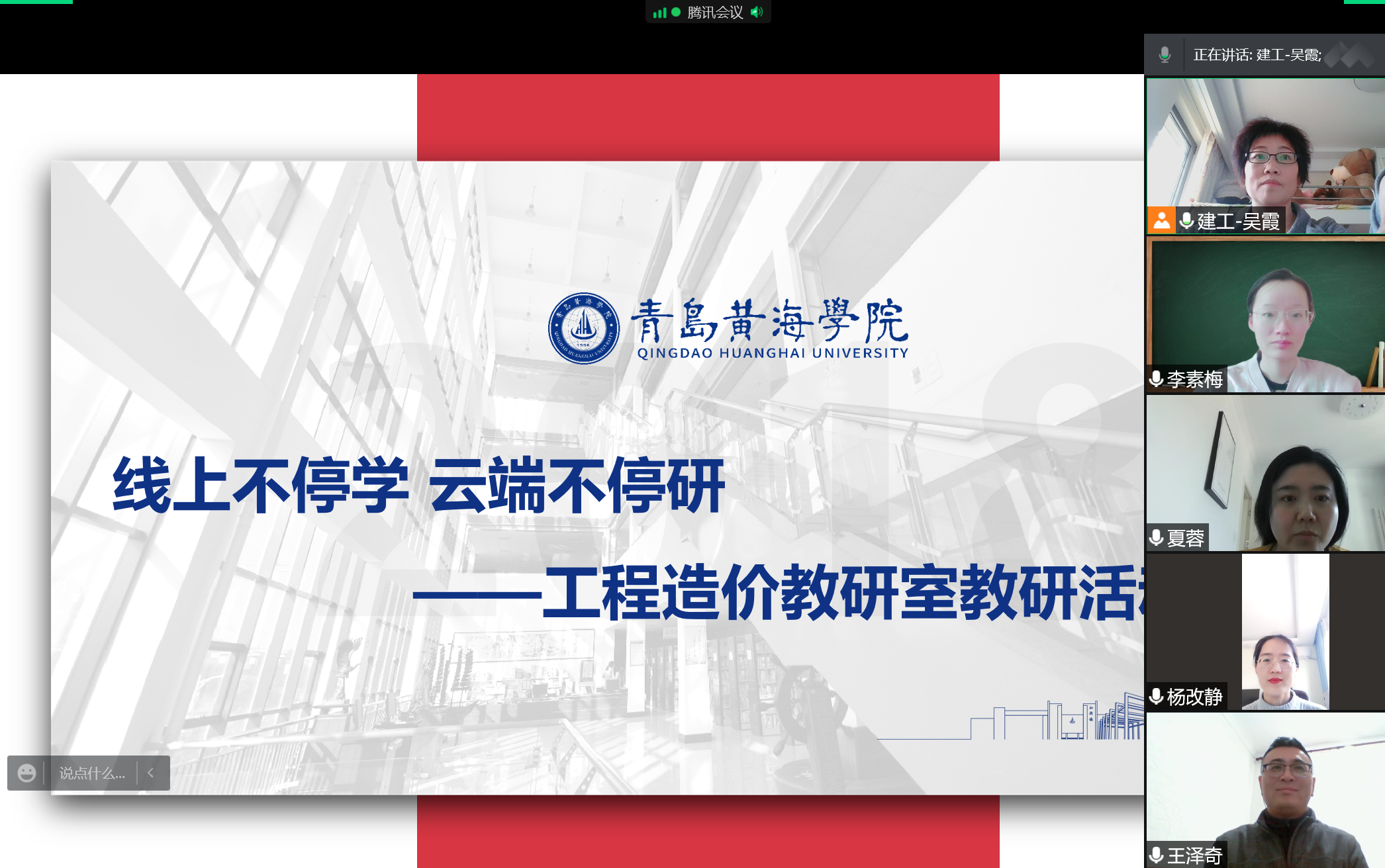 攻坚克难,“疫”不容辞,线上教研,居家备课,工程造价系全体教师从未放下教学的责任,从未停止教研的步伐,疫情下的网络教学,带给老师的不仅仅是挑战,还有昂扬的斗志和激情。“停课不停教、停课不停学”,需要师生共同努力,探索最适合的教学方法,来打造高效的网络课堂,让我们师生携手守护健康、不负春光,愿美好如期而至。