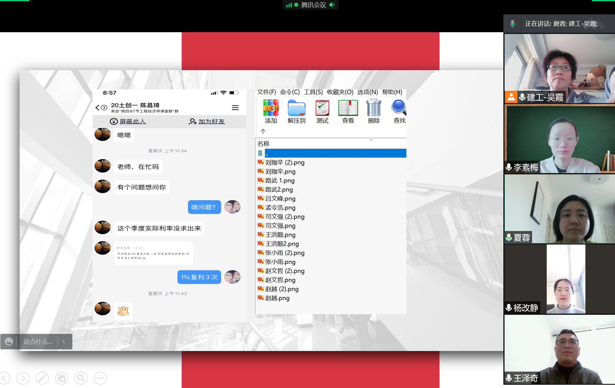 副主任夏蓉老师分享了采用钉钉软件授课的经验,将钉钉、QQ群和学习通三大网络平台联用,完善课程体系,线上答疑等。她认为老师应该时刻准备好全心全意为同学们服务,要擅长发现同学们的可爱点和闪光点,真诚的欣赏与鼓励同学们,才能让同学们在学校感受到家的温暖,更加热爱生活,热爱学习。