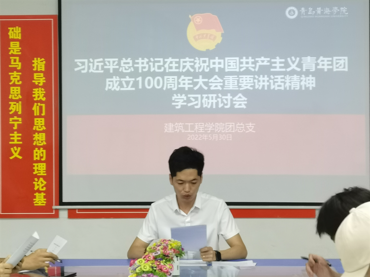 建筑工程学院于5月30日晚在知行楼401A举行了习近平总书记在庆祝中国共产主义青年团成立100周年大会重要讲话精神学习研讨会,建筑工程学院团总支书记潘月宇、社联及各社团会长参加会议。
