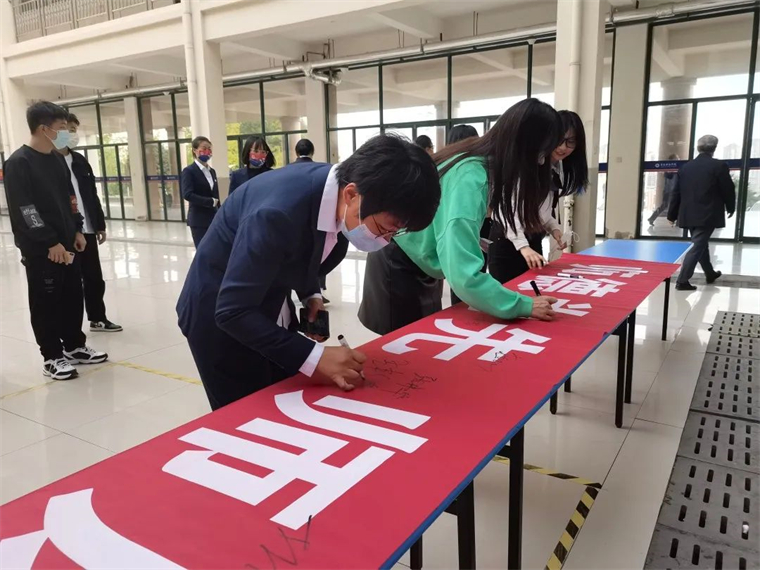 全体教师着正装,佩戴校徽,在孔子像前庄严宣誓:忠于人民的教育事业,履行教师的神圣职责。爱国守法、以德育人;爱岗敬业、关爱学生;刻苦钻研、严谨笃学;勇于创新、奋发进取;淡泊名利、志存高远;教书育人、为人师表;团结协作、终身学习。为教育事业的全面发展,为中华民族的伟大复兴,为人类文明的不断进步,贡献自己的全部智慧和力量!宣誓后每位教师在“师德为先,师风为本”横幅上完成签字。