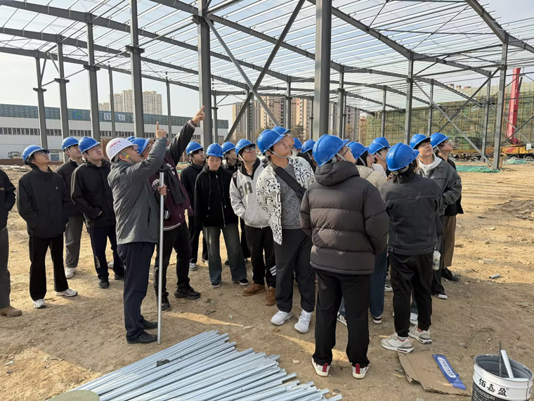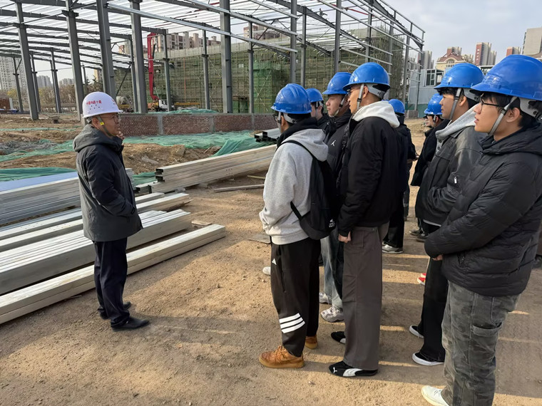 作为结构体系的典型案例,门式刚架成为本次实习所选项目,涵盖基础施工、构件安装、围护系统搭建等全流程,为学生提供了“看得见、摸得着”的学习平台。