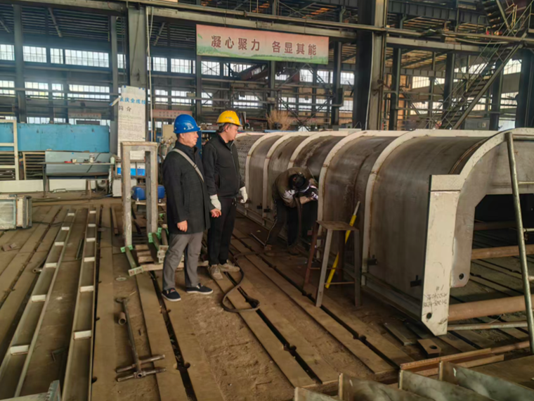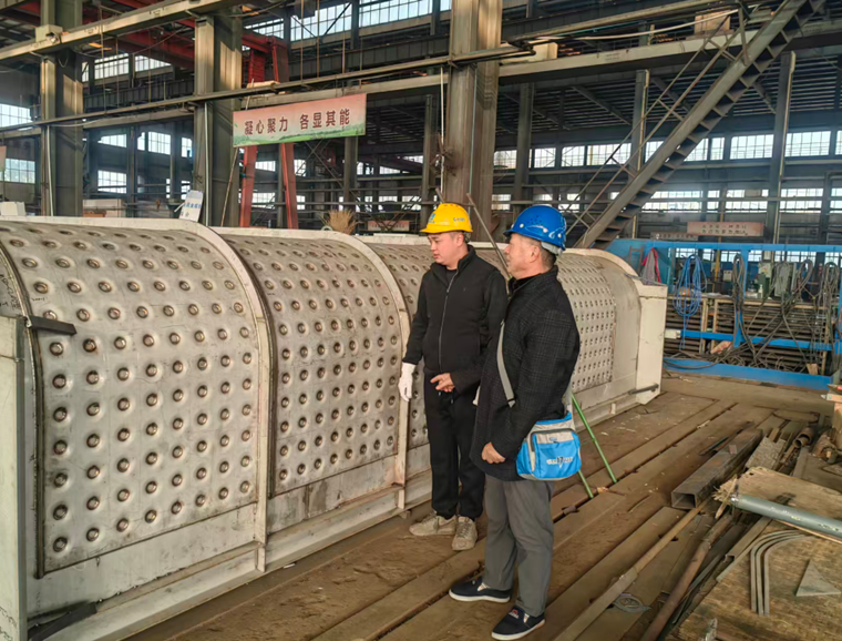 潘教授一行首先参观了捷能高新的核心生产车间,实地考察了汽轮机辅机装配生产线、三类压力容器焊接车间及 LNG 新能源设备研发中心。在生产现场,企业技术负责人详细介绍了公司持有三类压力容器设计制造资质、ASME(U印/ S印)及API(4F/7K/8C)认证的核心优势,以及在石油炼化设备、风电钢结构等高端装备制造领域的技术积累与市场布局。潘教授重点关注了原材料采购成本构成、精密制造工艺造价控制点、国际认证产品成本核算等行业痛点,结合自身研究经验与企业管理人员深入探讨了成本管控优化路径。