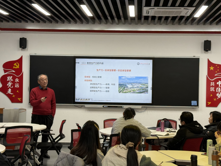 2026年1月7日下午,马克思主义学院在VR教室成功举办题为“向新而行,质焕新生——以新质生产力为引擎,擘画‘十五五’高质量发展新蓝图”的专题讲座。本次讲座由夏从亚教授主讲,讲座以前沿视角与实践导向为在场教师带来启发与思考。