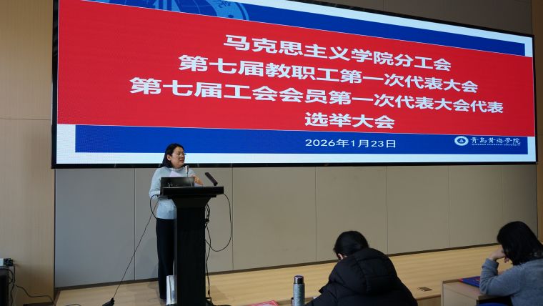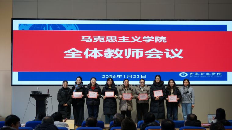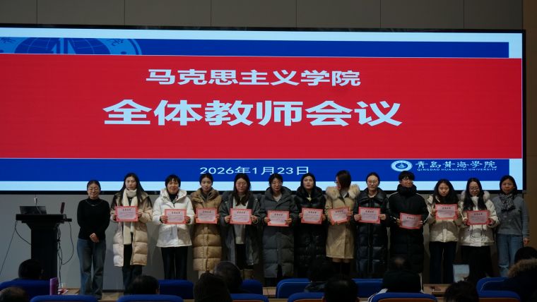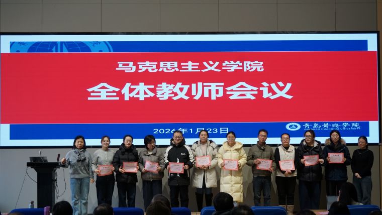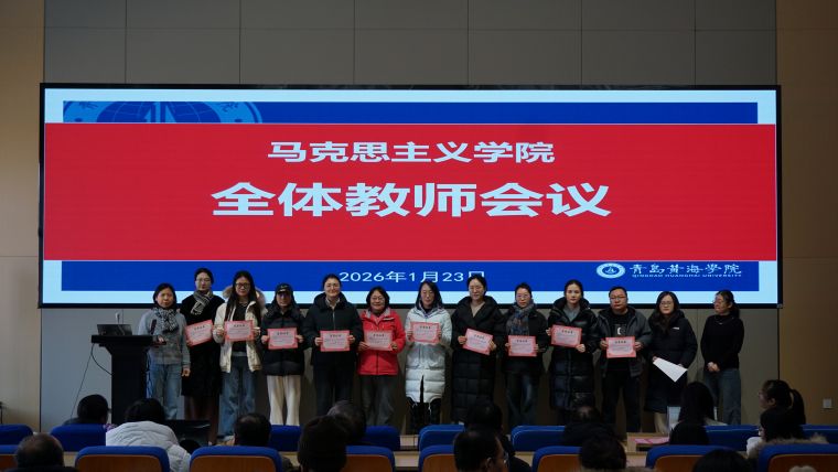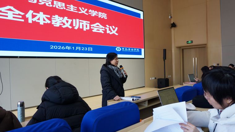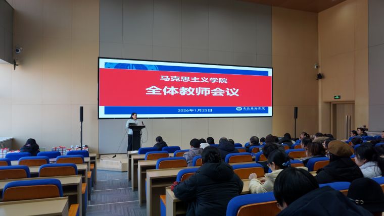 2026年1月23日上午,马克思主义学院2025-2026学年第一学期期末全体教师大会在知行楼434报告厅隆重召开。学院党总支书记谈笑、副院长司林梅、院长助理朱秋莲、学院办公室主任王艳欣及全体教师出席会议。会议由谈笑书记主持。