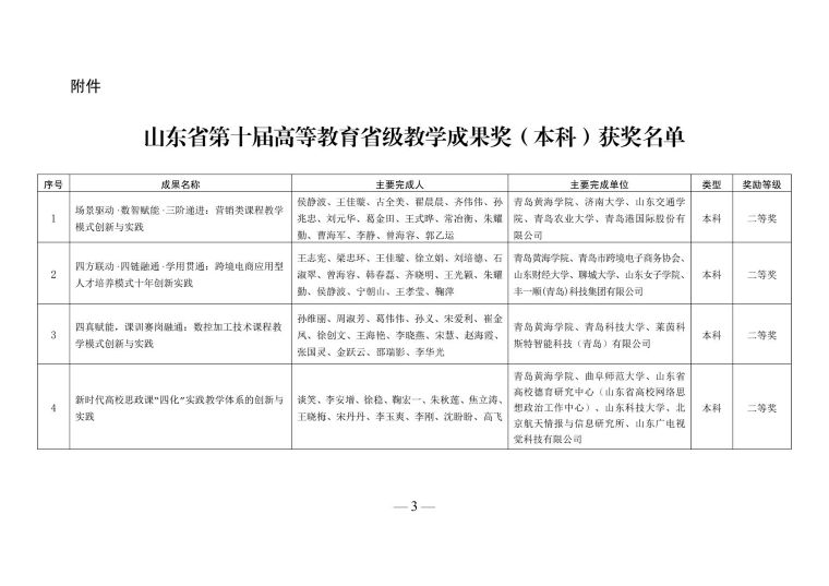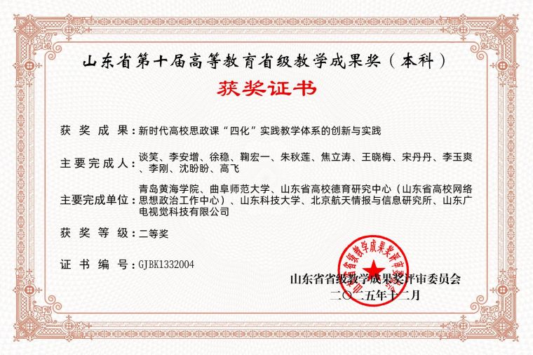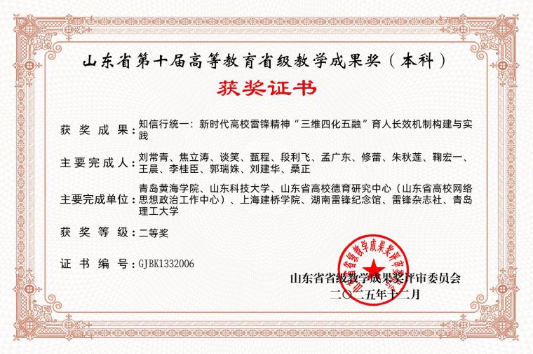 根据《山东省教育厅关于开展第十届高等教育省级教学成果奖评选工作的通知》(鲁教高函〔2025〕21号)及评审结果公示,我院在山东省第十届高等教育省级教学成果奖评选中喜获3项二等奖,实现历史性突破。其中,学院主持申报的《新时代高校思政课“四化”实践教学体系的创新与实践》《知信行统一:新时代高校雷锋精神“三维四化五融”育人长效机制构建与实践》两项成果均荣获本科类二等奖;另有参与完成的《四方联动·四链融通·学用贯通:跨境电商应用型人才培养模式十年创新实践》项目,作为联合申报单位也获得本科类二等奖。