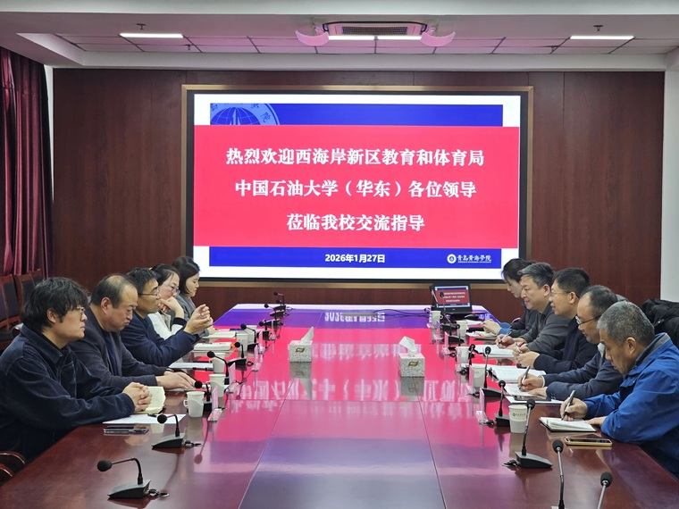 1月27日下午,青岛西海岸新区教体局学区服务指导中心主任田怀玉、社区教育专干牛刚、长江路学区教育服务中心副主任王森,携手中国石油大学(华东)继续教育学院副院长徐小峰、项目部主任高媛媛、项目部主管郎颖莹一行莅临我校,专题调研老年教育工作。校长助理孙在福及继续教育学院相关负责同志参加座谈。