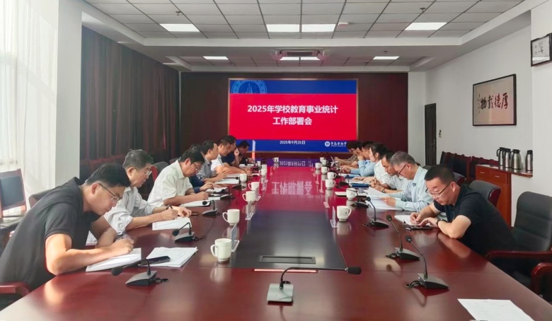 9月25日下午,我校在行政楼201会议室组织召开2025年教育事业统计工作部署会,传达学习全省教育事业统计工作会议精神,并部署我校2025年教育事业统计调查表填报工作。学校党委副书记、副校长孟广东主持会议并讲话。学校相关部门负责人及各部门统计人员参加会议。