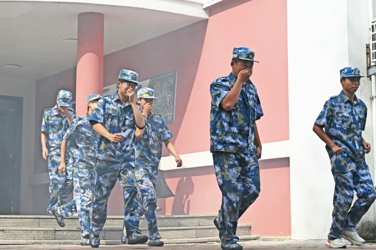 随着总指挥发布演练开始命令,安全管理处点燃烟雾弹,公寓服务中心拉响哨声警报,演练正式启动。各楼层疏散工作人员提醒新生保持低姿捂鼻,沿疏散指示标志有序撤离,新生们反应迅速、动作规范,在辅导员督促下快速撤离至指定集合点,各学院随即清点人数并上报总指挥,全程高效有序。