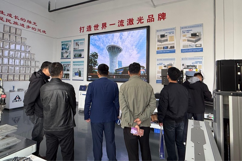 在陶高总经理的陪同讲解下,招生就业处处长助理张龙洁一行观摩了公司的核心激光设备、创新技术产品以及精密制造流程,深入了解公司在激光技术领域的研发实力、生产规模与企业文化。