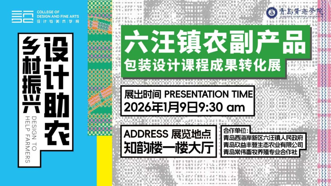 为推动校地融合助力乡村振兴,发挥高校专业与人才资源优势,提升我镇农副产品品牌形象与市场竞争力,1月9日上午,六汪镇与青岛黄海学院联合举办“设计助农·乡村振兴——六汪镇农副产品包装设计课程成果转化展”活动。镇党委组织委员徐颂、青岛黄海学院设计与美术学院党总支书记王维智、镇相关企业负责人及学院师生代表共同参与。