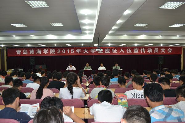 高校学生应征入伍对于推进国防和军队现代化建设、促进青年学生成长成才具有重要意义。为了在广大学生中宣传2015年度大学生应征入伍政策,鼓励广大学生应征入伍,我校与黄岛区人民武装部联合举办2015年度大学生应征入伍宣讲会。黄岛区人民武装部副部长赵雷、军事科参谋杨锡勇,我校学生处负责人、武装部部长孙兆忠,以及各二级学院分管学生工作领导、在校生男生代表等400多人参加了会议。