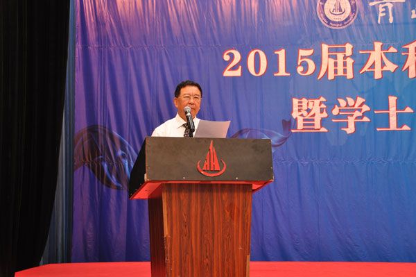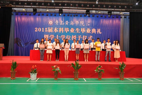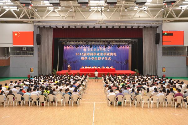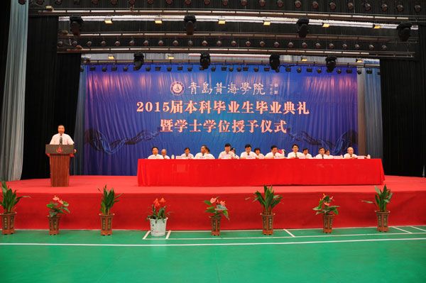 2015年6月26日上午,青岛黄海学院2015届本科生毕业典礼在校体育馆隆重举行。董事长刘常青、校长焦奎、常务副校长李武修等校领导班子全体成员及教师代表、2015届本科毕业生代表出席毕业典礼。毕业典礼由党委副书记宋庆泽主持。