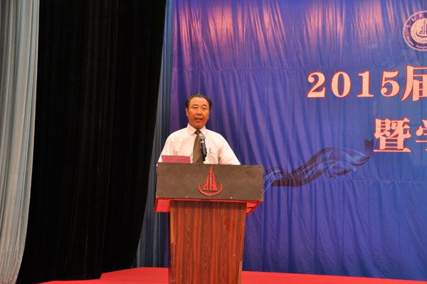 焦奎校长在典礼上讲话,他说作为师长,对即将远行的同学们,再叮嘱几句:希望同学们做一个敬德修身、知行合一的人,做一个勤于学习的人,做一个传播正能量的人,做一个有梦想的人,做一个会工作和生活的人。学校不希冀毕业生以荣华富贵,炫耀装点校门。希望大家以爱心温暖社会,在改善社会、改善民生中作出踏实的无愧内心的点滴贡献,通过自己智慧的头脑、勤劳的双手,闯出属于自己的一片天空。