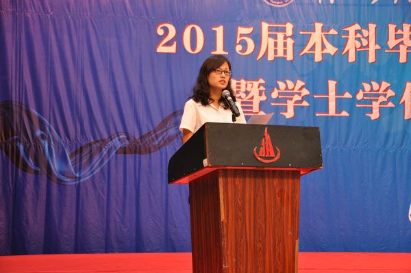 交通与船舶工程学院曹绪祥同学代表毕业生发言,他代表2011级全体同学感谢母校和老师四年来的悉心教导和精心栽培。教师代表李红英老师代表教师发言,祝福毕业生在社会这所大学校里成长成才,为母校增光。