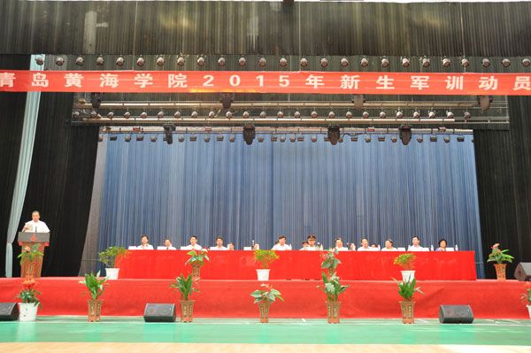 8月31日上午,青岛黄海学院2015级新生军训动员大会在校体育馆隆重举行。常务副校长李武修、校党委副书记宋庆泽、军训团团长杨文献及军训领导小组、军训指挥部相关领导出席动员大会。大会由宋庆泽副书记主持。