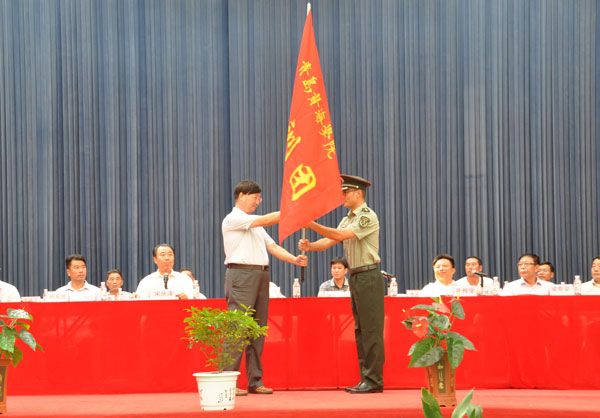 李武修校长为军训团授旗