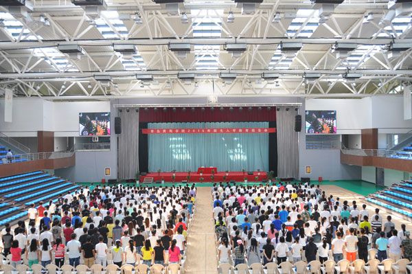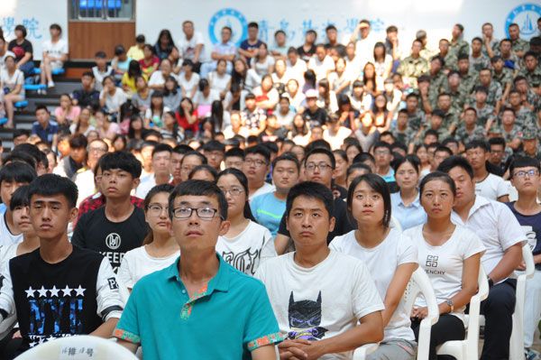 9月3日上午,天安门广场举行中国人民抗日战争暨世界反法西斯战争胜利70周年纪念大会。青岛黄海学院部分师生代表、2015级新生军训承训部队官兵齐聚校体育馆,收看阅兵盛况,为祖国阅兵加油助威!