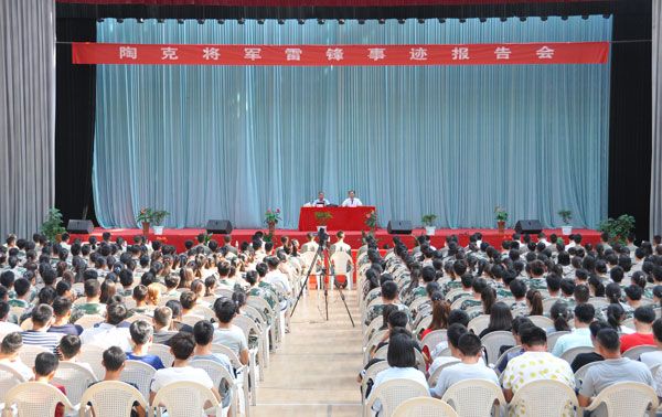 9月8日下午,原《解放军报》副总编辑、军队战略规划咨询委员会咨询委员陶克少将应邀来我校在体育馆为全校4000余名新生作了一场精彩而生动的雷锋事迹报告会。校党委副书记宋庆泽、学生工作分管领导、各二级学院行政副院长及承训官兵代表出席了报告会。报告会由校党委副书记宋庆泽主持。