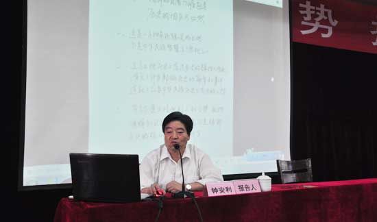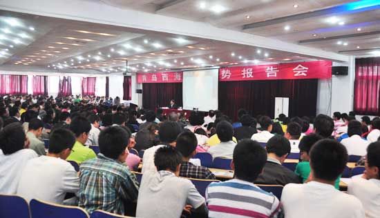 9月29日,青岛黄海学院邀请原胶南市人大常委会副主任、胶南市文联名誉主席钟安利在学院一号教学楼西报告厅为教师及学生代表举行“青岛西海岸形势”报告会。学院党委书记冯宜明、党建联络员陈稷玲、副院长刘泽坤、副院长王东省、学院办公室主任孙思经到会听讲。报告会由学院党委副书记宋庆泽主持。
