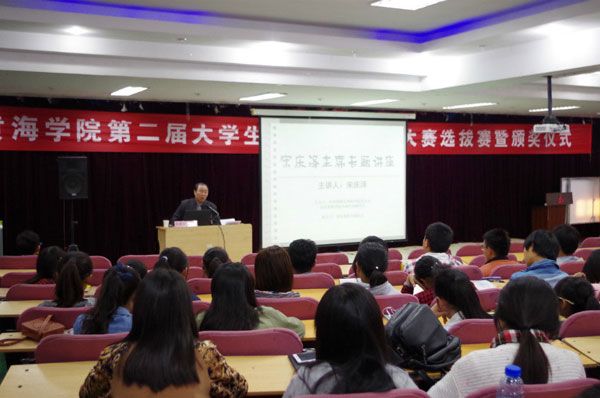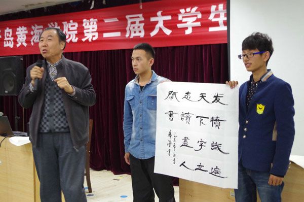 10月29日下午,中国书法家协会会员、中国书法家青岛创作培训基地副主任、黄岛区文联副主席、青岛黄海学院党委副书记、校书画艺术研究会主席宋庆泽在知新楼东学术报告厅,为我校书画协会会员作书法专题讲座。