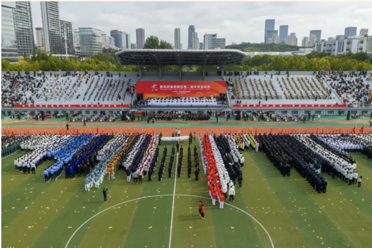 青岛西海岸新区第二届全民运动会于10月18日在中国石油大学圆满落幕。本届运动会以“建设活力新区、打造体育之城”为主题,设置高校组等6个组别,田径、足球、篮球等18项赛事。青岛黄海学院代表队获高校组团体总分第三名,并获“特殊贡献奖”。