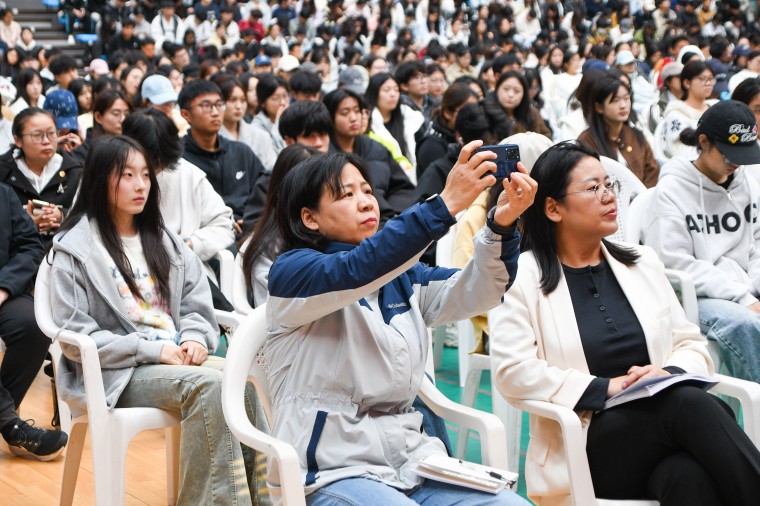 设计与美术学院辅导员闫应军:“郭明义主席的报告是一场深刻的精神洗礼。他让我们看到了超越视觉的‘心灵之美’和‘品格之美’。这堂课让我更加坚信,‘立德树人’是艺术教育的根基。我将把今天的所思所感融入到日常工作中,引导我的学生们不仅要用画笔和设计去创造‘美的作品’,更要用行动和品德去塑造‘美的心灵’。”