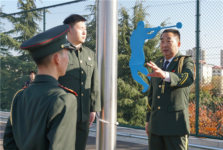 活动期间,董立敢对学校国旗护卫队升降国旗仪式进行了现场指导。从升旗手势的力度到步伐的节奏再到升国旗必须注意的细节礼仪,他逐一示范、细致讲解,并叮嘱队员们不仅要把升旗练好,更要传承护卫国旗的精神,永远将国旗放在心中。
