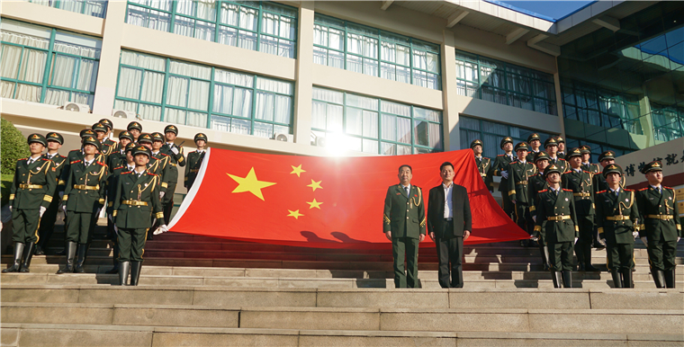 在董立敢的带领下,全场师生高唱国歌,并面向国旗庄严宣誓:“爱党爱国爱人民,祖国在我心中,国旗在我心中,请党放心,强国有我!请党放心,强国有我!”