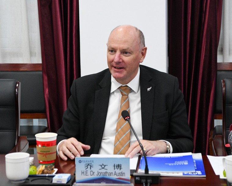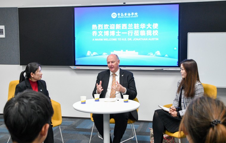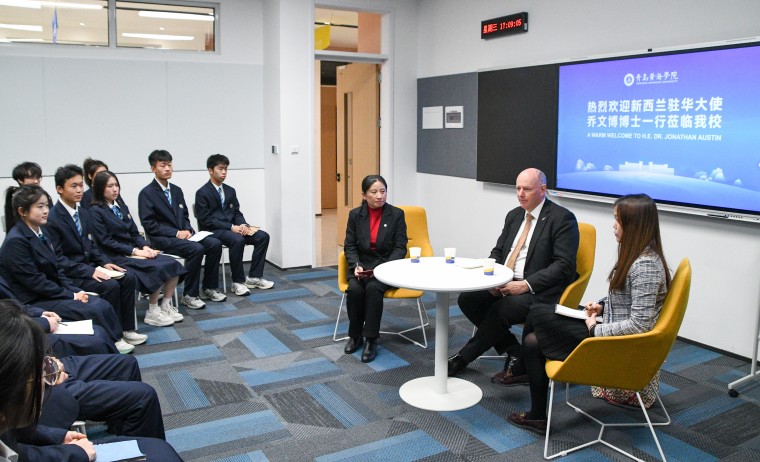 12月3日下午,新西兰驻华大使乔文博博士一行来校访问,就深化中新高校之间教育合作、拓展学生相互交流领域等议题进行深入交流,并实地考察青岛黄海学院惠灵顿理工联合学院(以下简称“惠灵顿学院”)办学情况。青岛市委外办副主任丁安辉陪同来访。学校校长李清山,副校长、惠灵顿学院院长梁忠环,副校长王鹏程等校领导及相关部门负责人予以热情接待。